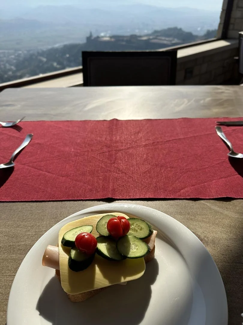 One of the highlights of our stay at Kerculla Resort was the buffet breakfast included every morning, served in the open air dining room with a breathtaking view of Gjirokaster’s rooftops and valley. This wasn’t just a breakfast – it was an experience of fresh air, morning light and genuine Albanian hospitality.